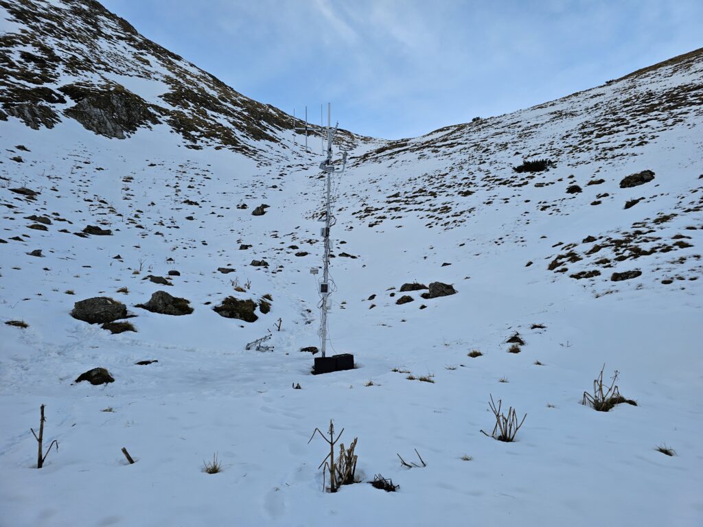 Odkopanie stacji LK i MK ze śniegu (2 m pokrywy), pobranie danych offline z 4 m LK i 3,5 m MK, zrestartowanie online w LK